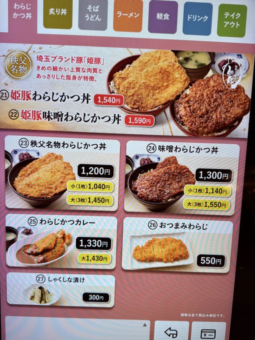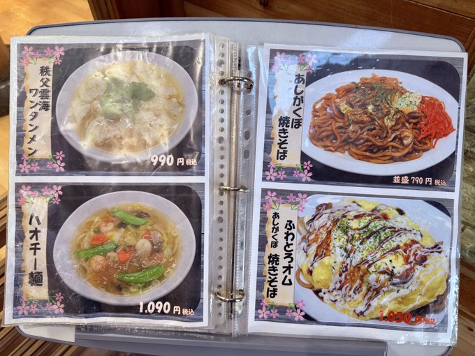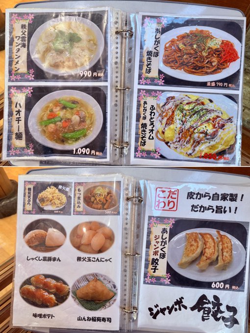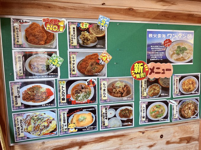 壁一面に並ぶ秩父名物の料理写真に誘われて、道の駅併設の食堂でランチタイム。