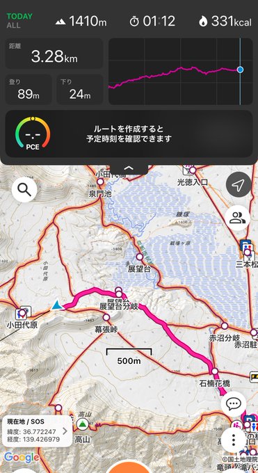 往復4時間40分、12.7km。