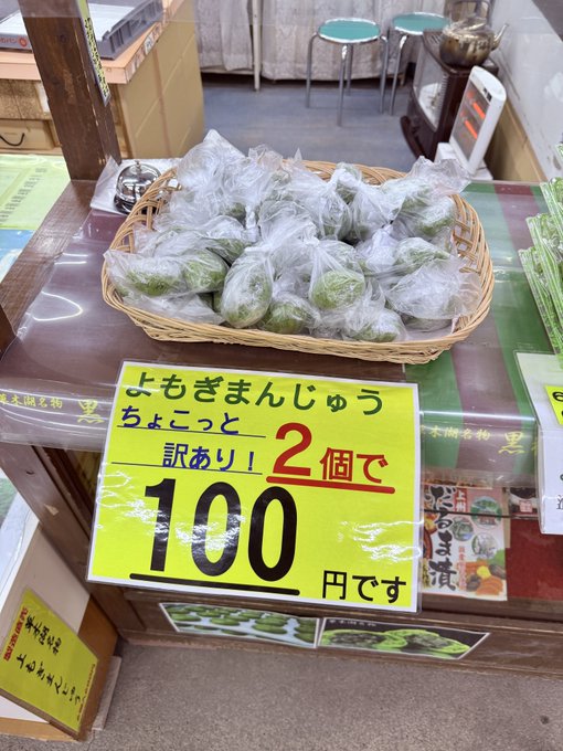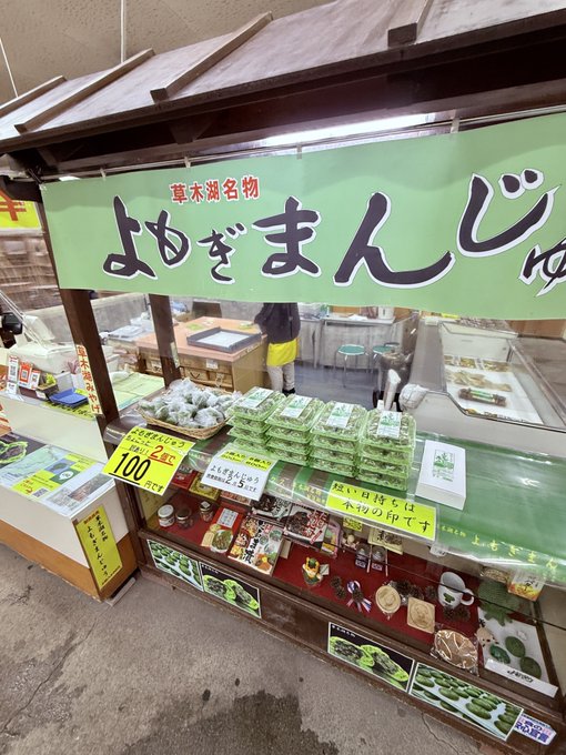 お約束の草木ドライブインに立ち寄って、名物「よもぎまんじゅう」をお得にゲット。