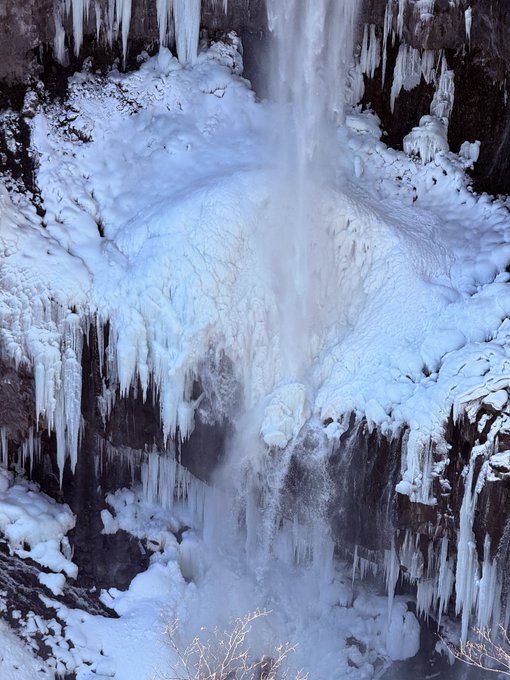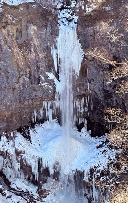 2026.2.1 栃木県日光市 【奥日光 冬の華厳ノ滝の氷瀑】 紅葉の華厳ノ滝もいいけれど、 冬の氷瀑シーズンも侮れない。 滝が氷の衣をまとって、 まるで天ぷらみたいにスケール感増し増し。 この迫力。 上からの無料展望台からでも、 十分すぎる見応え。 ※駐車場は15分以内なら無料。