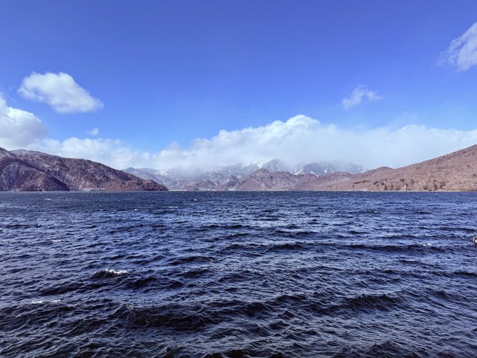 冬ならではの、なんとも言えない紺碧のブルーをたたえた中禅寺湖。