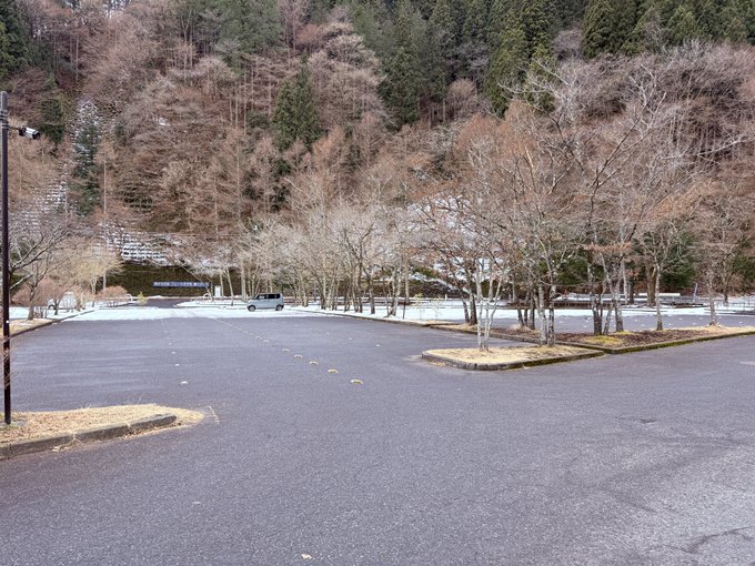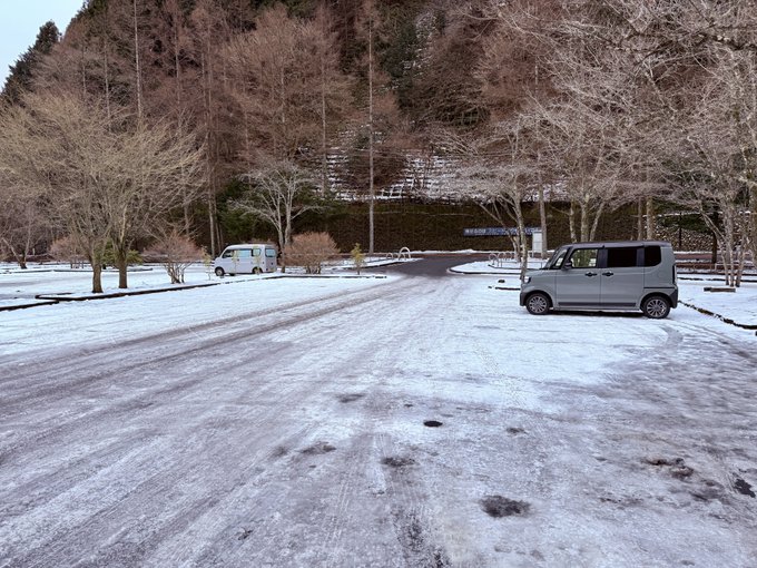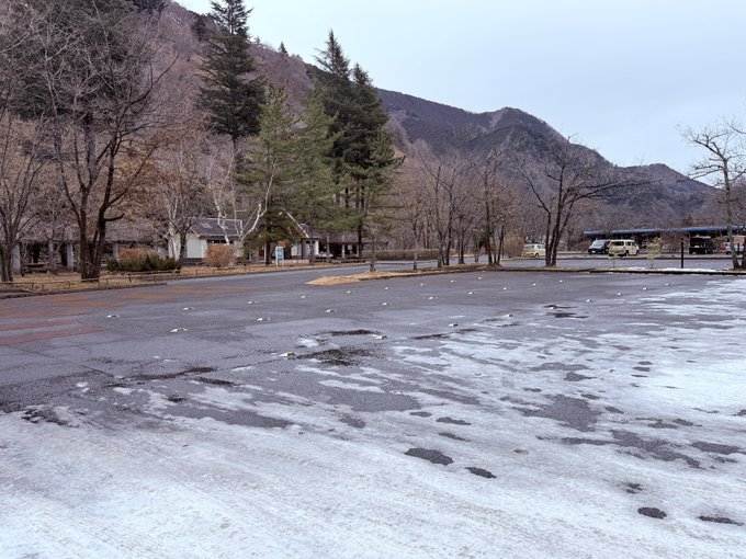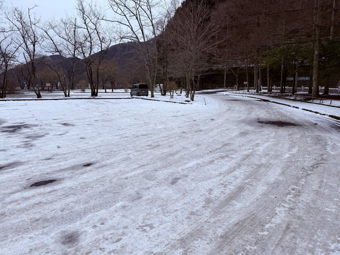 駐車場の半分が圧雪&凍結