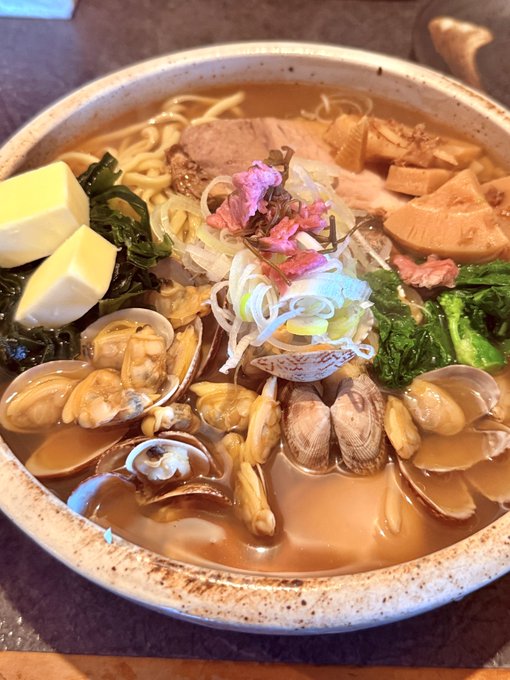 ⚫︎桜香るあさりラーメン(怪獣盛り)