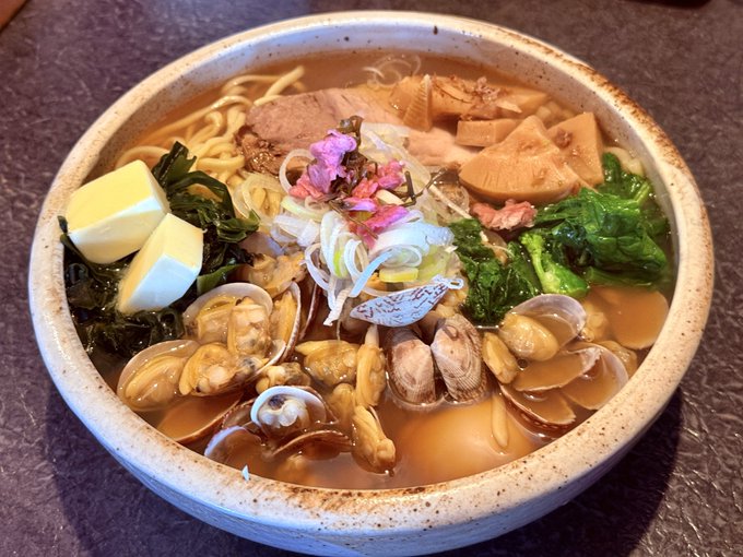 桜香るあさりラーメン。