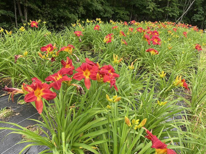 2021.6.13 秩父ミューズパークの黄色と赤のへメロカリスが今年も満開です!。まるで野反湖の野反キスゲの様な丘を埋め尽くす光景のミニチュア秩父版かな。南口駐車場は閉鎖につき、唯一開いてたプール横の駐車場から遥々歩きました。入口にネットがありますが、鹿避けなので、行ってよし! twitter.com/tadaiwai/statu… pic.twitter.com/nVwpOuW6or