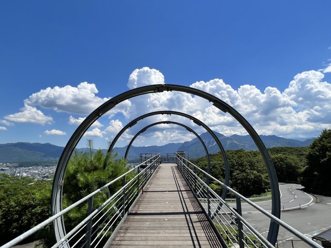 2022.7.31 埼玉県秩父市 【秩父ミューズパーク 旅立ちの丘】 デッキを歩いていくと流れ出す「旅立ちの日に」が郷愁を誘う感じかいつ来ても素敵な場所。展望台に居た地元高校生かな。お二人さん👩❤️👨の写真撮ってあげたけど、夏の日の思い出ってか、初々しいしくてこちらが照れました😆w pic.twitter.com/xJ0ZNvMQlm