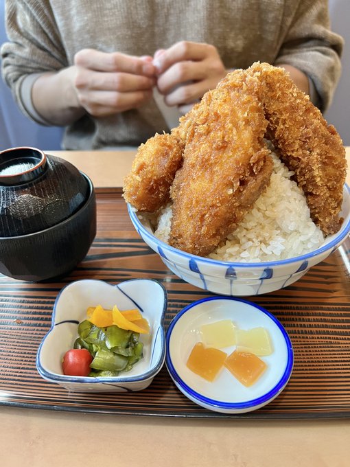2022.12.10 群馬県下仁田町 【れすとらんヒロ】 妙義山ミニ登山を終えて、遅めのランチは下仁田名物で攻めてみた! 『下仁田かつ丼(大盛)』チキン また発掘してしまったかもしれないカタチ🤩。旬な下仁田ねぎ揚げはマスターからの心意気サービスご馳走様。 pic.twitter.com/e3H73iU0mh