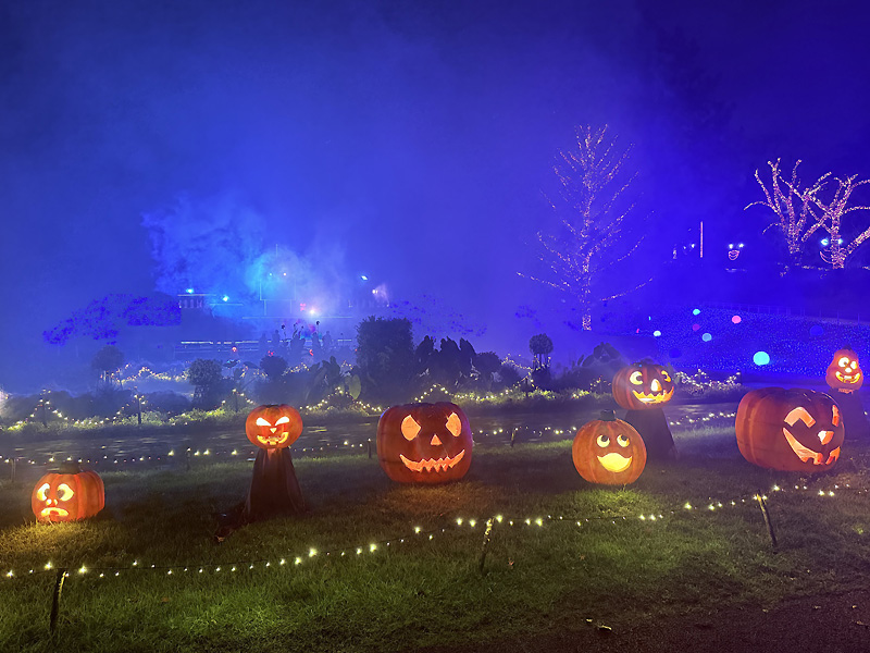 ハロウィンと言えばジャック・オー・ランタン!中央口から植物園にかけて、森いっぱいにライトアップやイルミネーションの仕掛けがいっぱい!