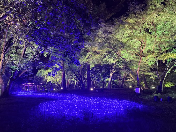 奥のカエデ園では、森の湖が幻想的に光り、個人的にはここが一番のお気に入りスポット✨