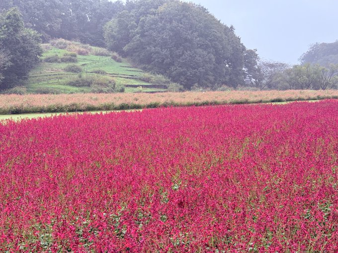 青空の下でも見てみたかったけれど、雨に濡れた赤ソバもまた美しく、満開に咲き誇っていました☺️