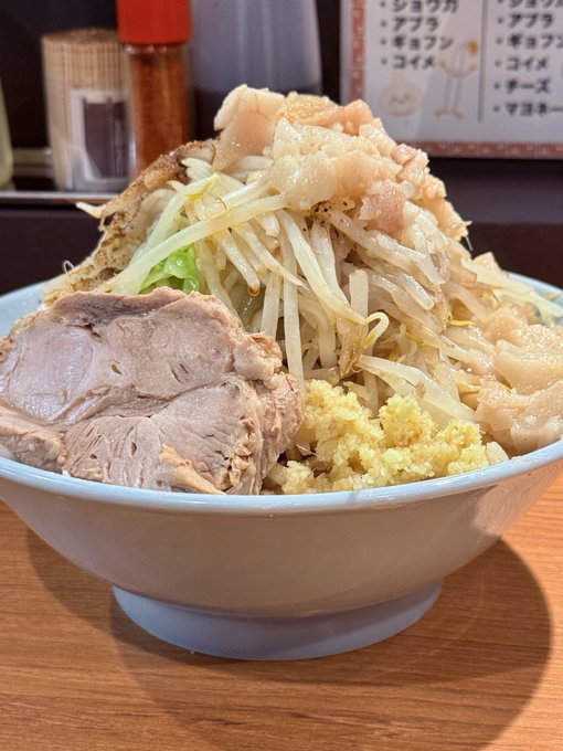 ワシワシ極太麺に全マシニンニクでパンチMAX😆