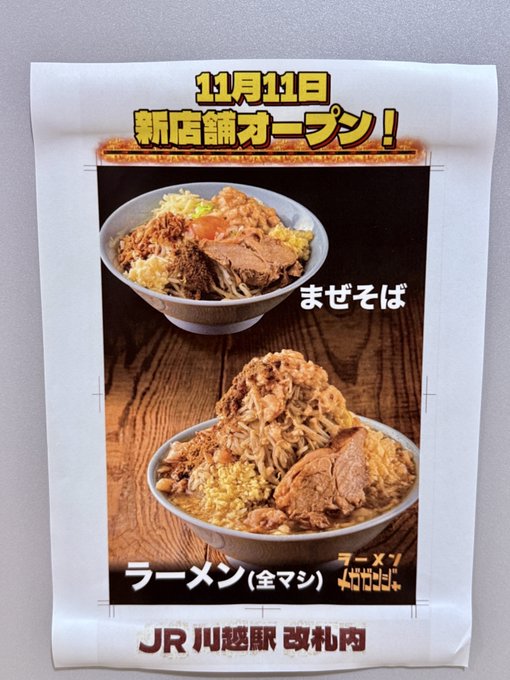 いわゆる“二郎系”のお店が、まさかのJR川越駅改札内にオープン。