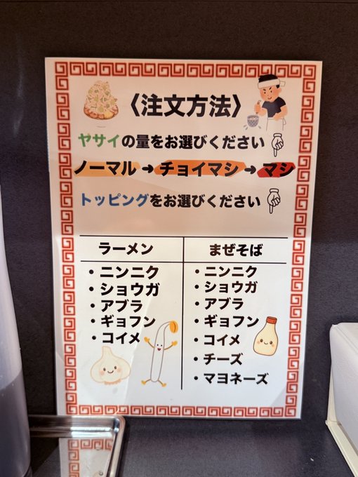 ヤサイマシ・全マシ (ニンニク、ショウガ、アブラ、ギョフン、コイメ)
