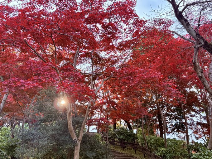 もみじの赤が深まってきていて、特に修景池や中央のあずまや周りの赤さが素晴らしい!