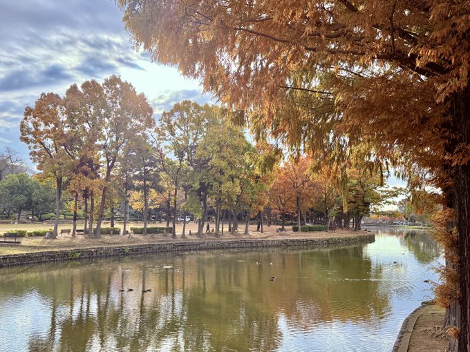 朝の空気が少しひんやり冬の気配を感じながら、色づき始めた上尾丸山公園へ朝の紅葉散策🍁