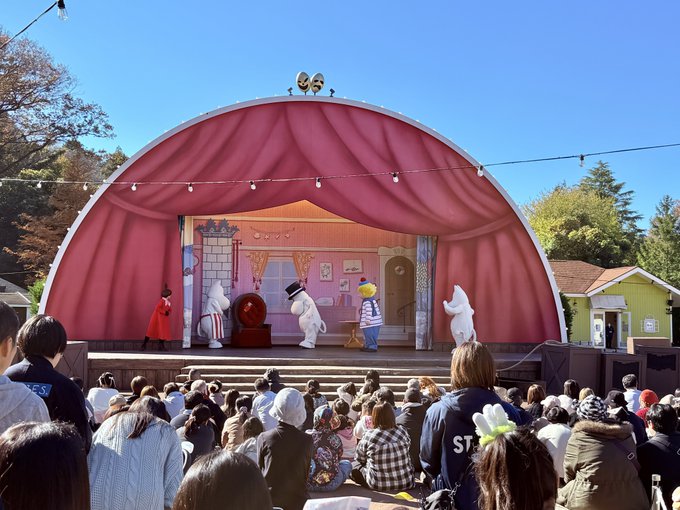 ステージではなく、ムーミン屋敷の前にて