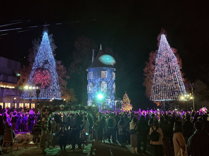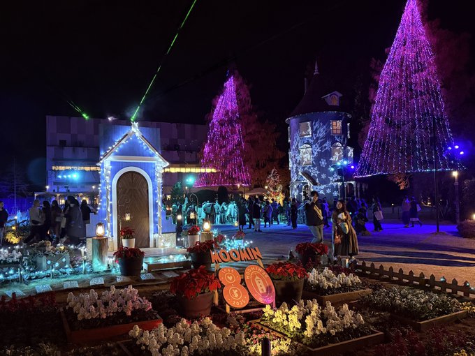 イルミネーションで飾られた昼間とは全く違った雰囲気のムーミンバレーパーク