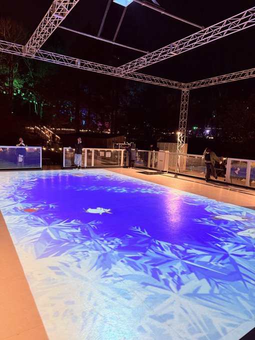 夜のスケートリンク。プロジェクションマッピングで、しかもキャラクターが追いかけてくる仕掛け。すでに受付終了してましたが、見学は自由。