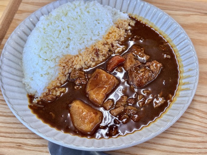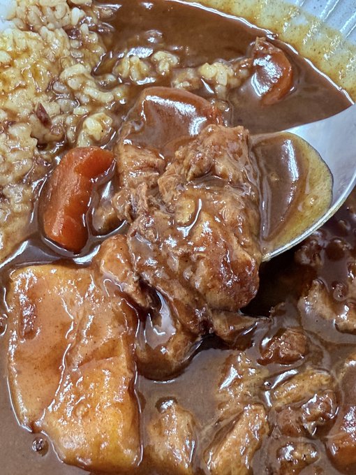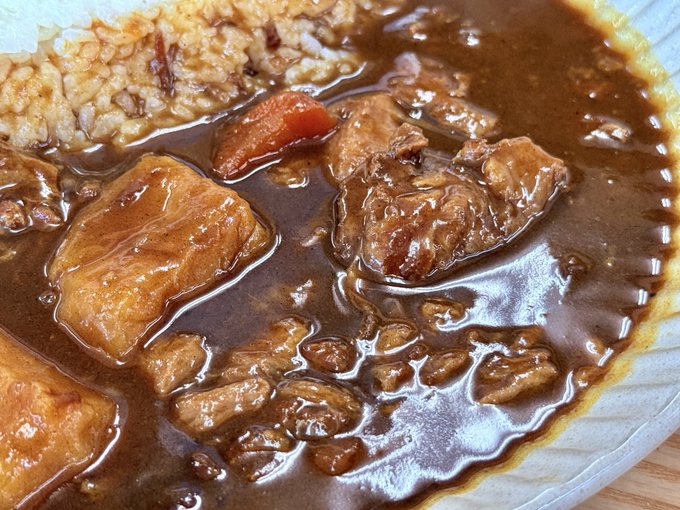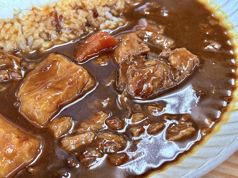 噛む前からほどける柔らかさで、牛すじのとろみがルー全体にじゅわ〜っと染み込み、 ふわぁ〜っと込み上げてくる幸福感…これは白米が進むやつ!