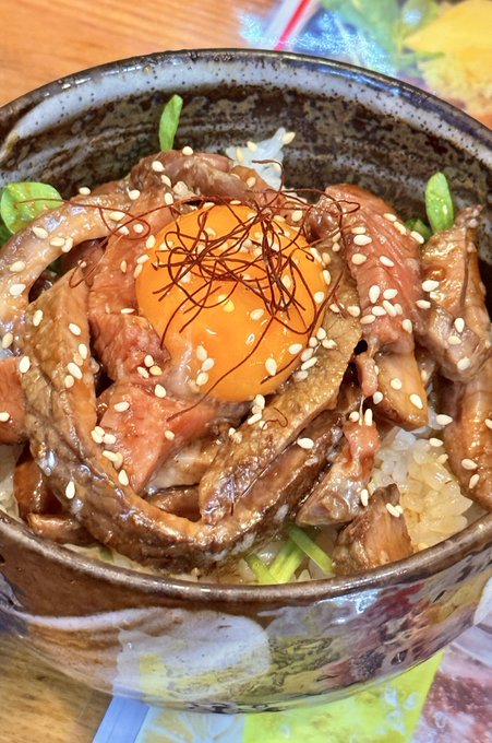 タレ×卵黄、そしてタレが染みたレアなビーフの噛みごたえ…シュワっとやばい😆最高!