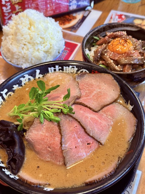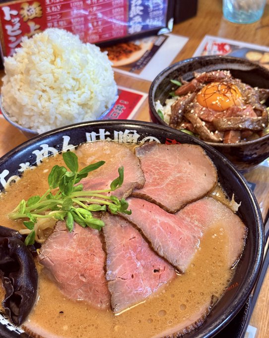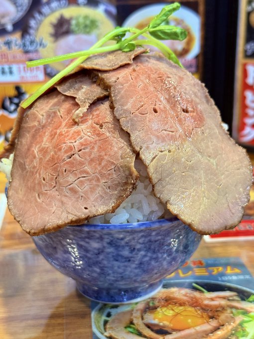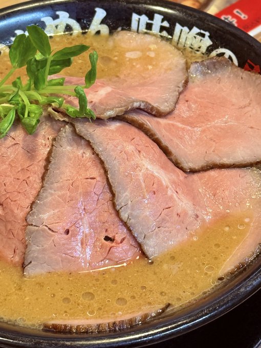 牛肉の塊を低温調理でじっくりローストした、あのエレガントなしっとり系の肉料理が、まさかのラーメン屋さんで出会ったサプライズ😳
