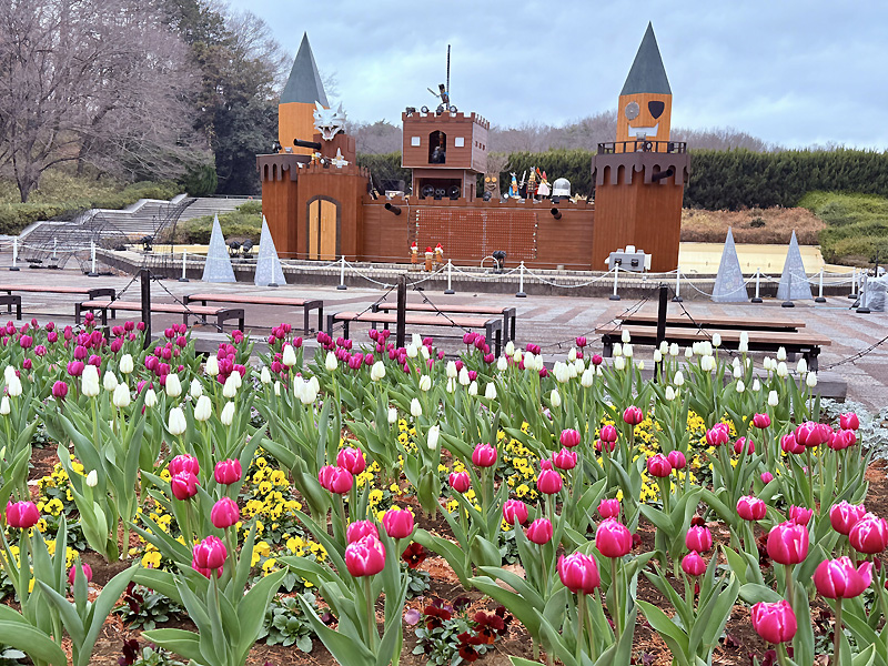中央口広場の花壇には、冬とは思えない可愛いチューリップが咲いていました。