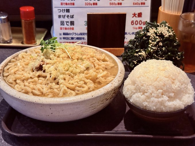 背脂トッピング、わかめごはん、小ライス特盛🍚