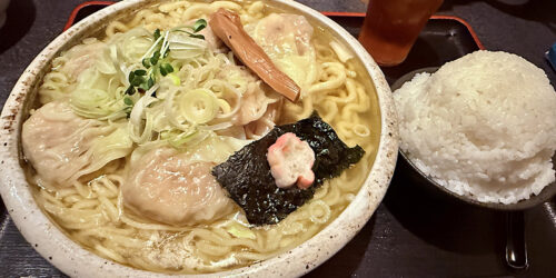 2025/8/10 秋田ラーメンはま190-ワンタン麺(怪獣盛り)にコーントッピング-埼玉県川越市